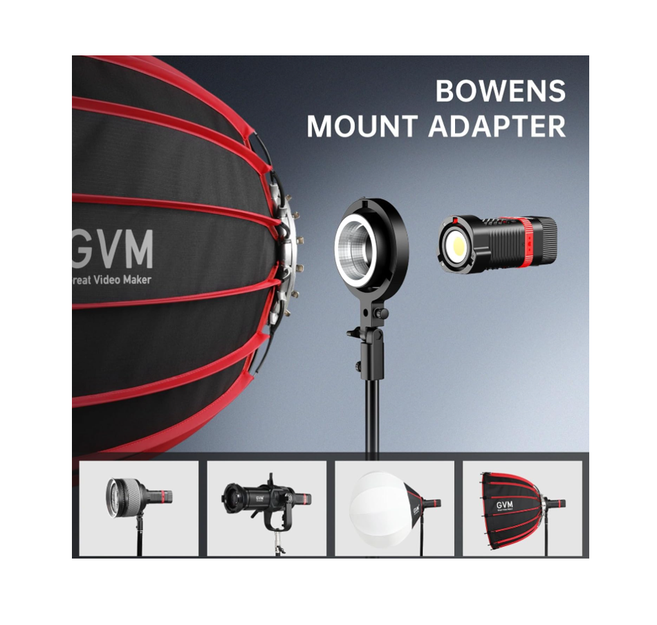 Incluye adaptador de montura Bowens, compatible con una amplia variedad de modificadores de luz como softboxes, reflectores y beauty dishes.