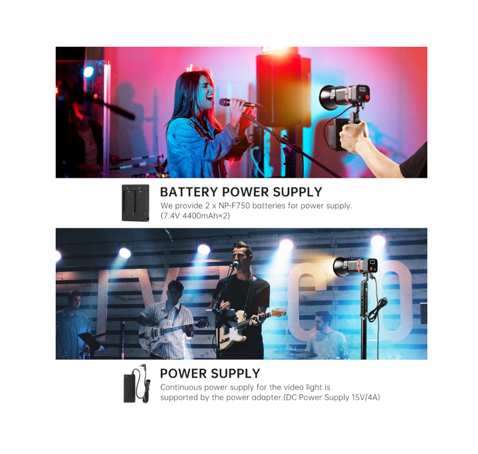 La luz LED soporta alimentación mediante adaptador de corriente o 2 baterías NP-750 (incluidas), ofreciendo mayor flexibilidad tanto en interiores como en exteriores. Ideal para grabaciones al aire libre, camping o situaciones donde no haya acceso a electricidad.