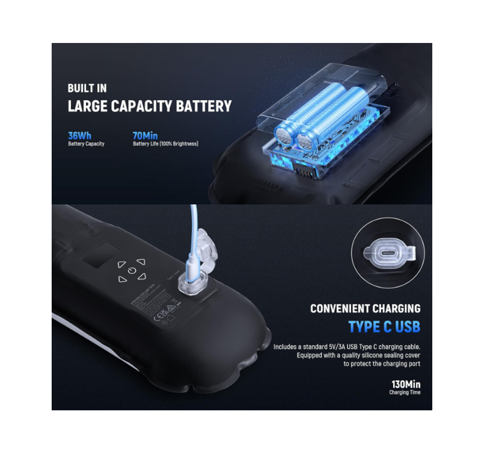 Batería integrada 5000mAh: Hasta 70 min de uso al 100%.