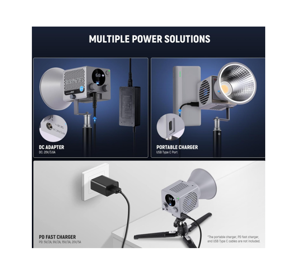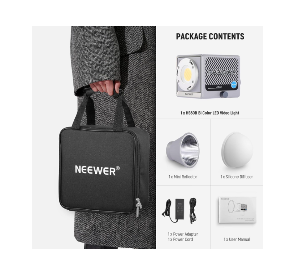 Con diseño compacto de solo 3.8" x 3.8" x 5.7", esta luz COB LED de mano cabe fácilmente en la palma de la mano. Ideal como luz principal o de relleno para fotografía, video, entrevistas, filmación al aire libre, streaming, vlogging o bodas.
