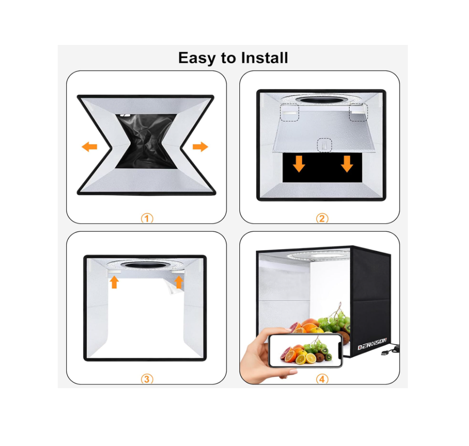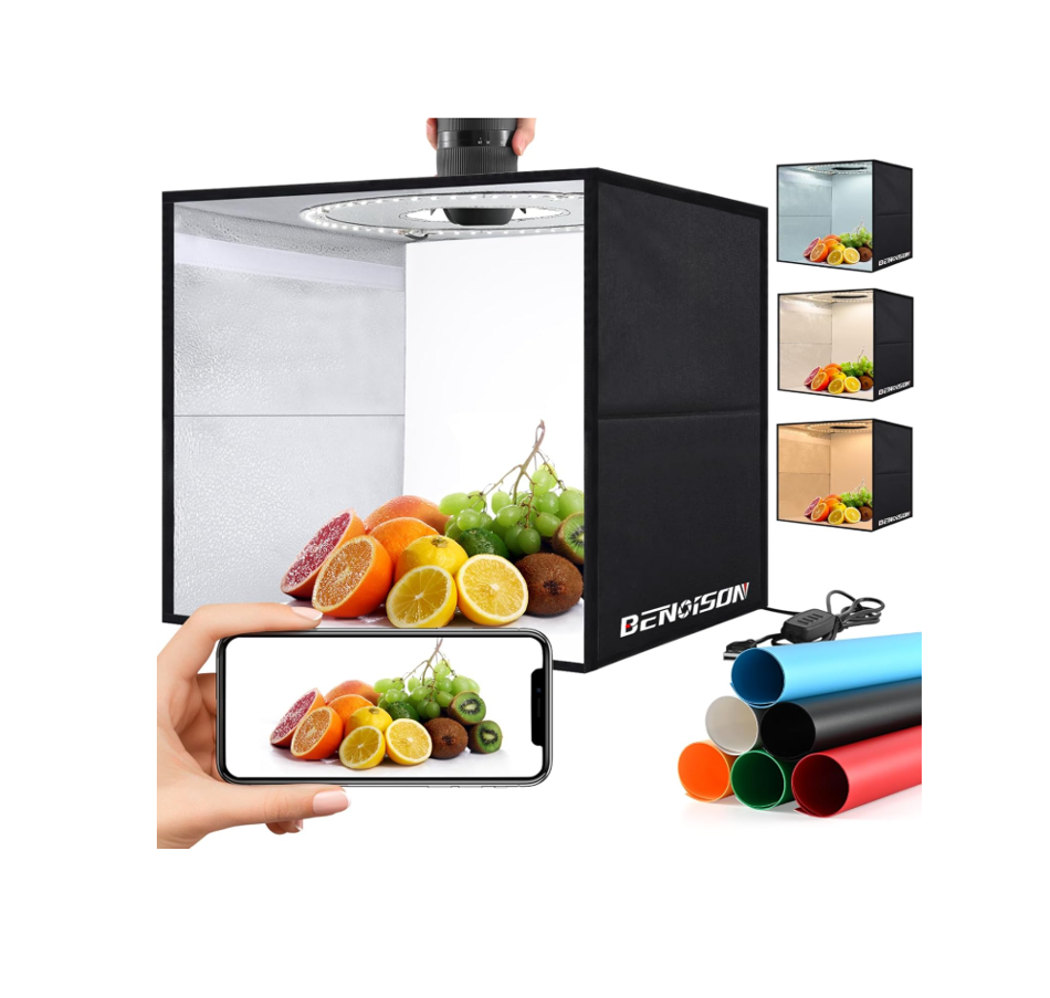 La caja de luz fotográfica BENOISON de 16 x 16 pulgadas está diseñada para ofrecer una iluminación uniforme, suave y profesional. Ideal para fotografía de productos, joyería, alimentos, accesorios y artículos de papelería. Su estructura portátil y fácil de montar la convierte en una herramienta práctica tanto para estudios como para uso doméstico o comercial.