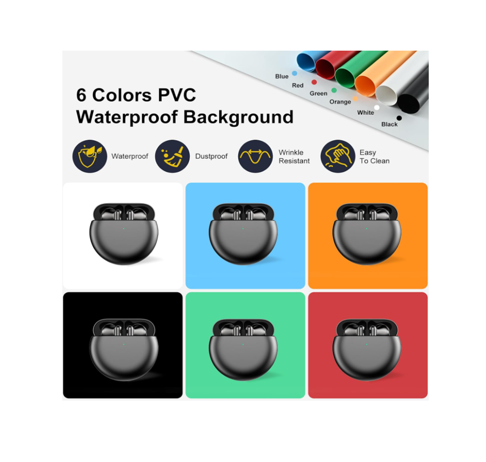 Incorpora fondos de PVC en blanco, negro, azul, rojo, verde y naranja, ideales para resaltar el estilo y características de cada producto.