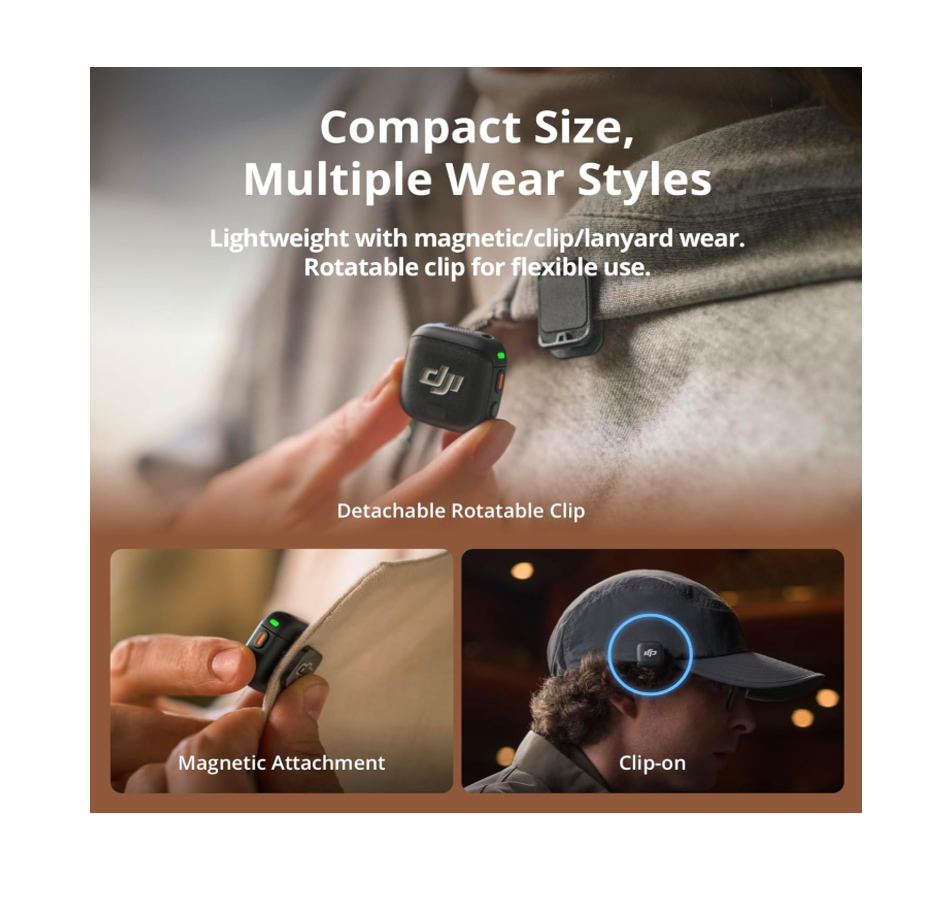 • Ligero e intuitivo, almacenamiento compacto [9] - Llévalo a cualquier lugar: este micrófono inalámbrico cabe en tu bolsillo o bolso, listo para vlogs de viaje, entrevistas callejeras o capturar ideas sobre la marcha.