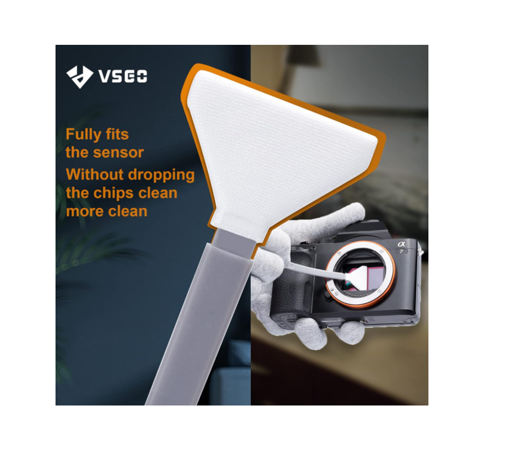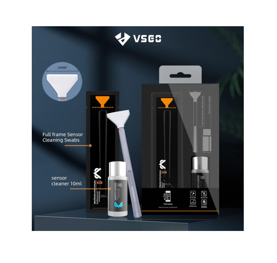 VSGO VS-S03E Kit de limpieza de sensor full frame, 12 hisopos de sensor full frame y liquido de limpieza de de 0.3 fl oz